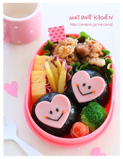バレンタイン ハートスマイルおにぎりのお弁当 キャラ弁 デコ弁 Happy Days